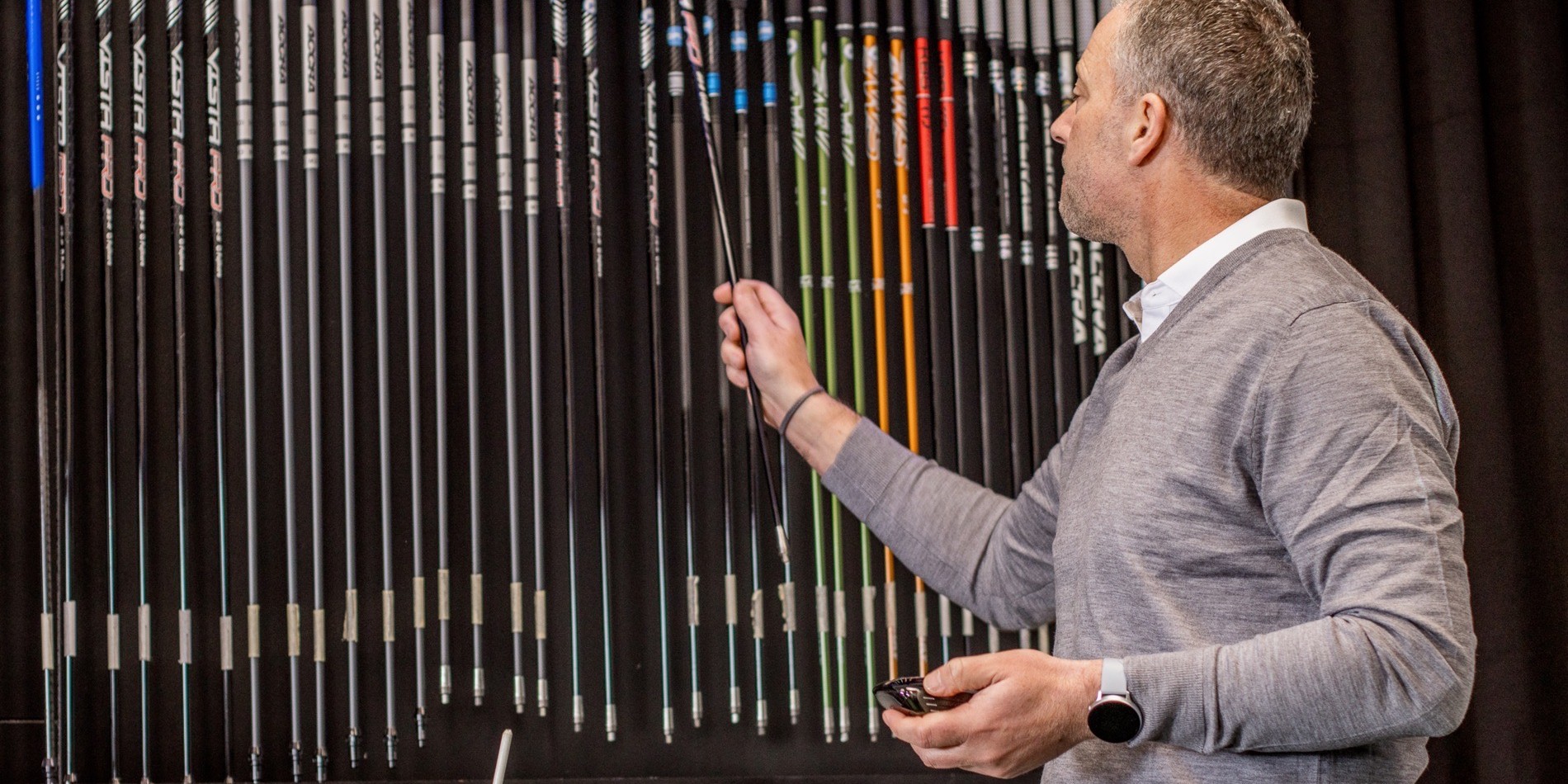 Daarnaast heeft Robert heel veel ervaring en een goede kijk op het materiaal. Hij ziet je een paar ballen slaan en weet meteen welke combinatie van shaft en clubhoofd bij je passen.