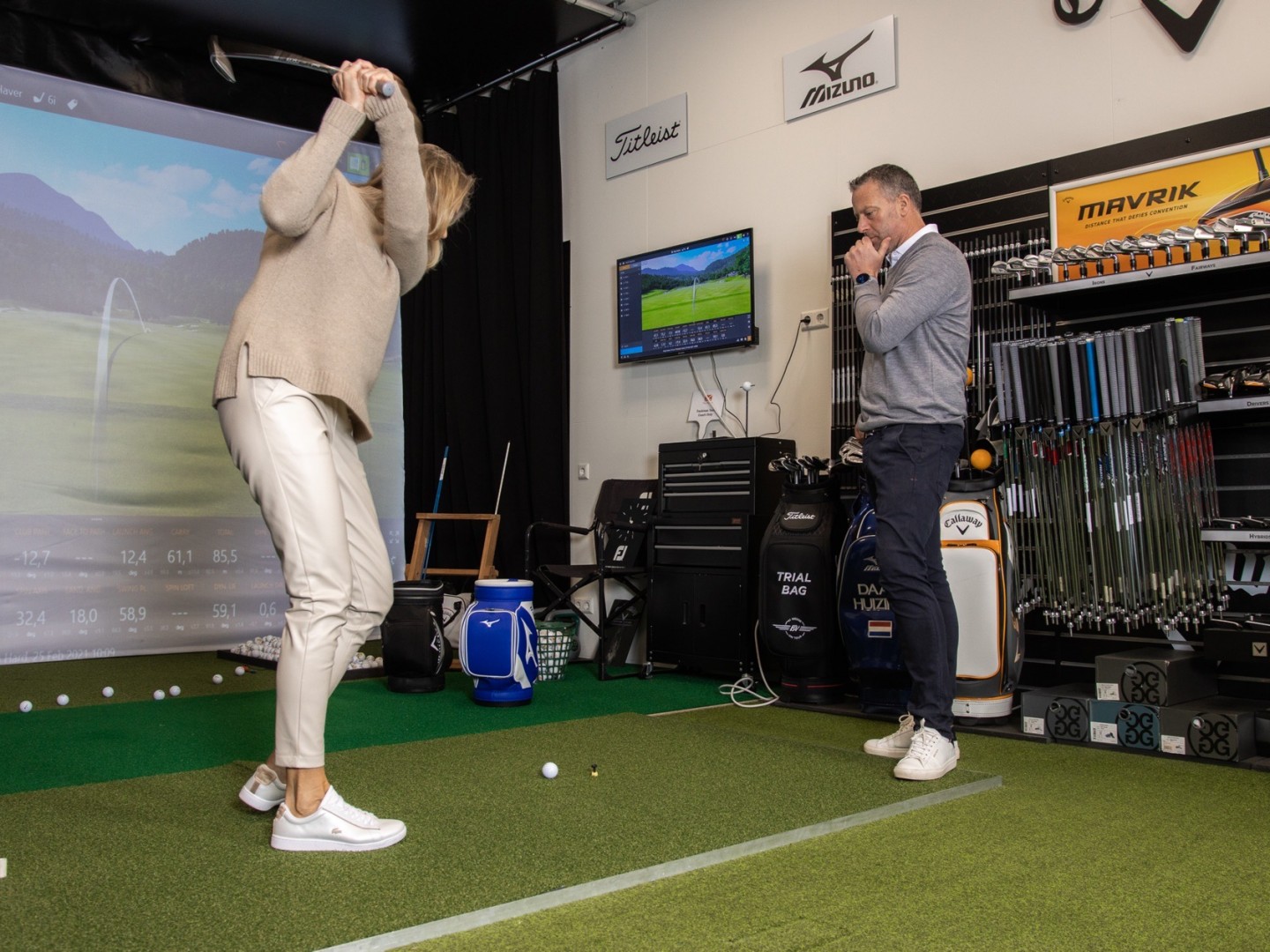Hierdoor heb je meteen een goed gevoel. Bovendien is het mogelijk om iedere combinatie club/shaft te testen waardoor je echt het beste kunt kiezen dat past bij jou. Een echte aanrader!